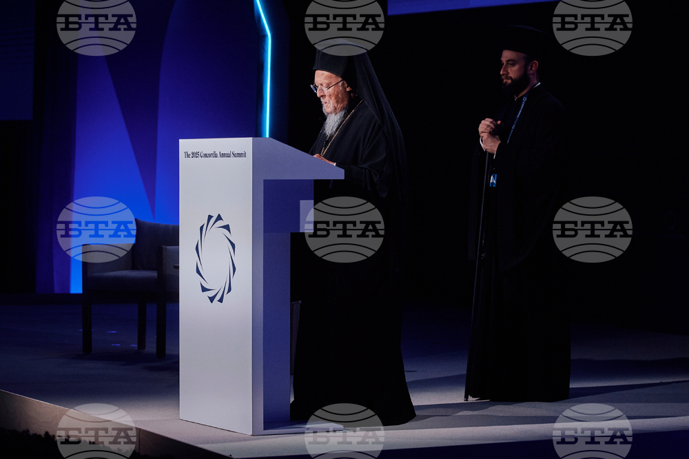 Ecumenical Patriarch Bartholomew speaks during the Advancing Human Rights and Social Progress session at the Concordia Annual Summit, in New York, Monday, Sept. 22, 2025. (AP Photo/Andres Kudacki)
