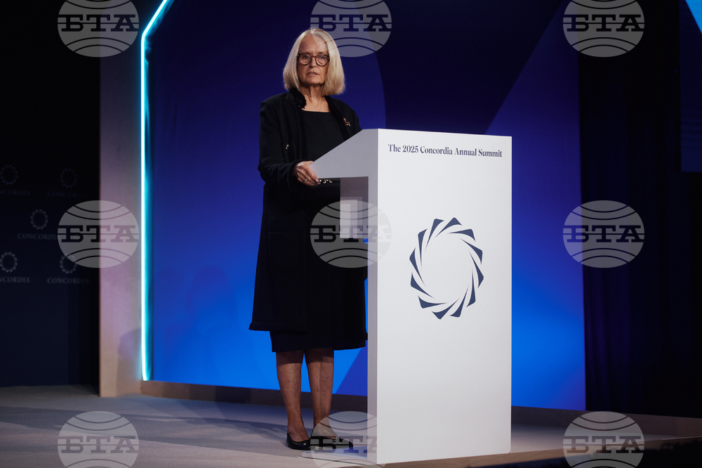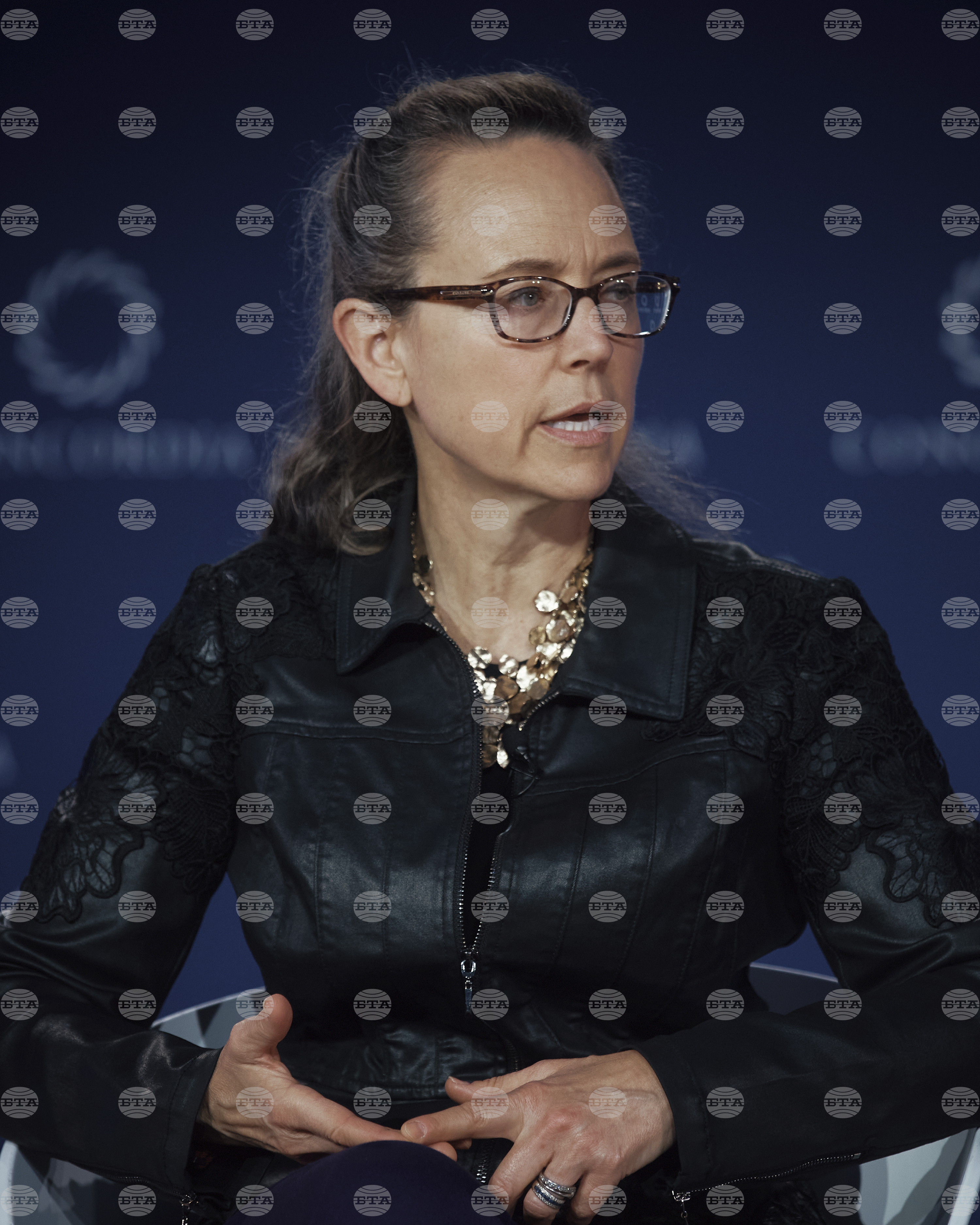 Sherrie Westin from Sesame Workshop listens during the Concordia Annual Summit in New York, Tuesday, Sept. 23, 2025. (AP Photo/Andres Kudacki)