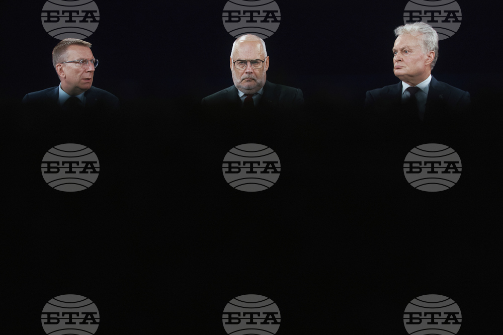 President of Latvia, Edgars Rinkevics, left, speaks next to President of Republic of Estonia, Alar Karis, center, and President of Republic of Lithuania, Gitanas Nauseda, right, during the Concordia Annual Summit in New York, Monday, Sept. 22, 2025. (AP Photo/Andres Kudacki)