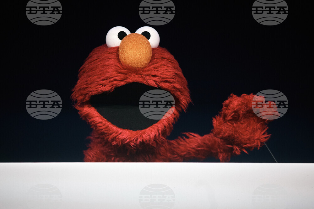 Elmo form Sesame Street speaks during the Concordia Annual Summit in New York, Tuesday, Sept. 23, 2025. (AP Photo/Andres Kudacki)