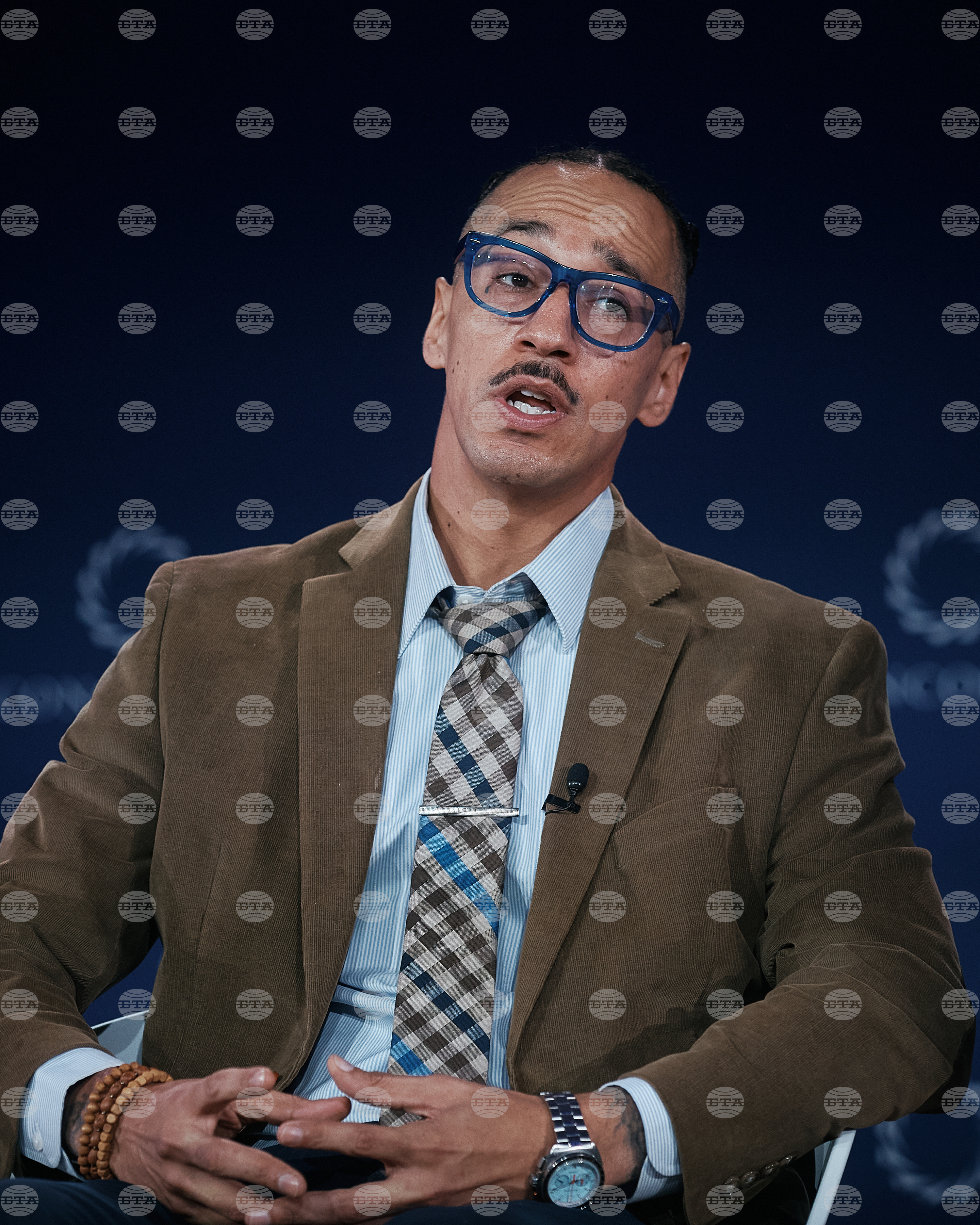 Anthony Martinez from Goodwil speaks during the Concordia Annual Summit in New York, Tuesday, Sept. 23, 2025. (AP Photo/Andres Kudacki)