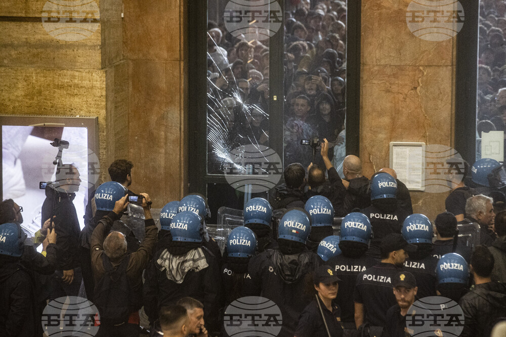 Protesters enter Central Station during clashes with police after the strike march in support of Palestine, in Milan, Italy, Monday, Sept. 22, 2025. (Marco Ottico/Lapresse via AP)