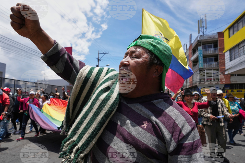 Indigenous people march against the government in Latacunga, Ecuador, Monday, Sept. 22, 2025. (AP Photo/Dolores Ochoa)