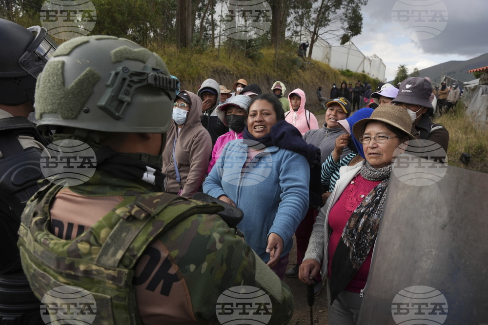 Soldiers block the entry of the indigenous march into the city during an anti-government protest in Latacunga, Ecuador, on Monday, September 22, 2025. (AP Photo/Dolores Ochoa)