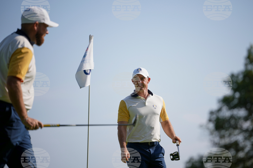 Europe's Rory McIlroy, of Northern Ireland, reacts after missing a putt on the second hole during a practice round for the Ryder Cup golf tournament, Tuesday, Sept. 23, 2025, in Farmingdale, N.Y., at Bethpage State Park's Black Course. (AP Photo/Matt Slocum)