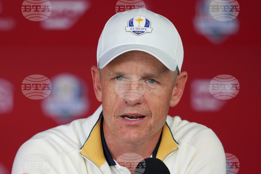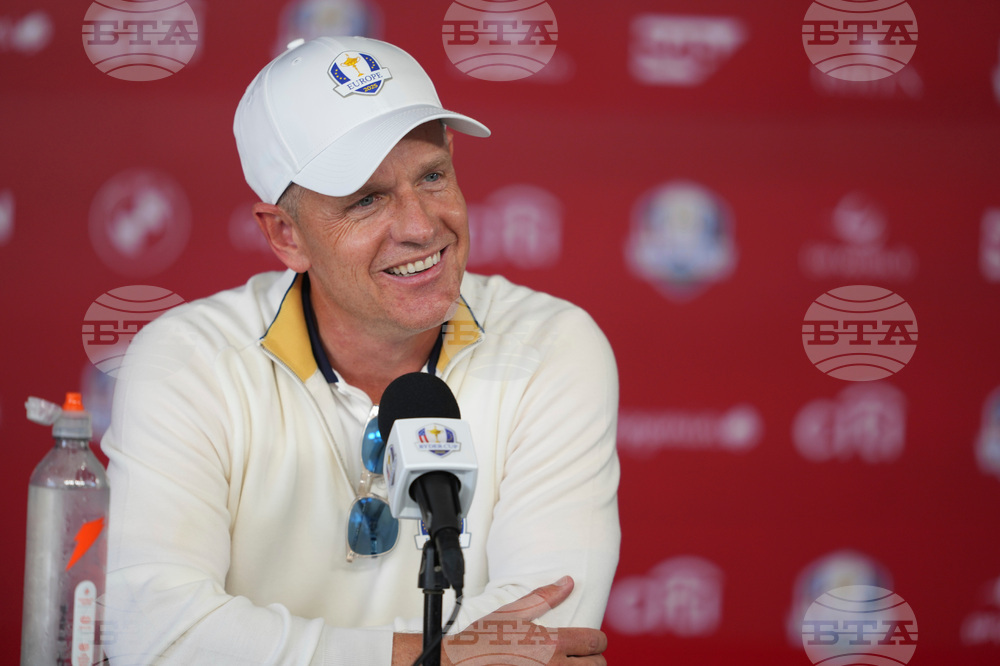 Europe Team Captain Luke Donald speaks during a news conference before a practice round at the Ryder Cup golf tournament, Tuesday, Sept. 23, 2025, in Farmingdale, N.Y., at Bethpage State Park's Black Course. (AP Photo/Lindsey Wasson)