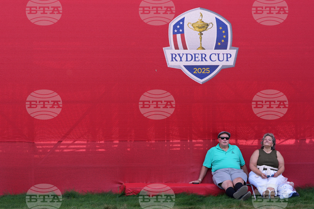 Fans rest during a practice round for the Ryder Cup golf tournament, Tuesday, Sept. 23, 2025, in Farmingdale, N.Y., at Bethpage State Park's Black Course. (AP Photo/Lindsey Wasson)