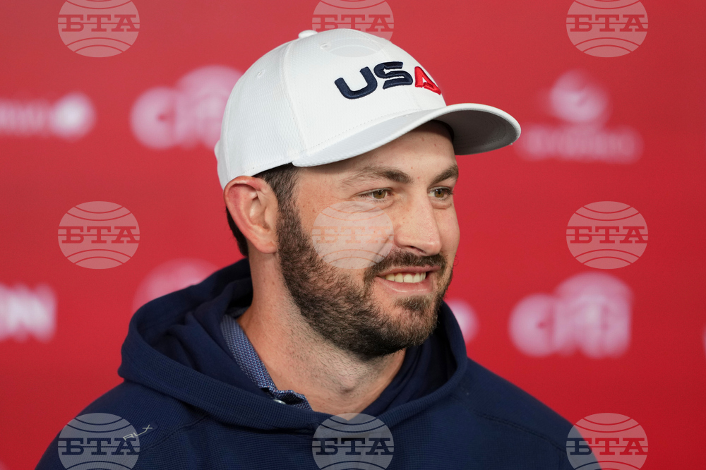 United States' J.J. Spaun speaks during a news conference before a practice round at the Ryder Cup golf tournament, Tuesday, Sept. 23, 2025, in Farmingdale, N.Y., at Bethpage State Park's Black Course between the United States and Europe. (AP Photo/Lindsey Wasson)