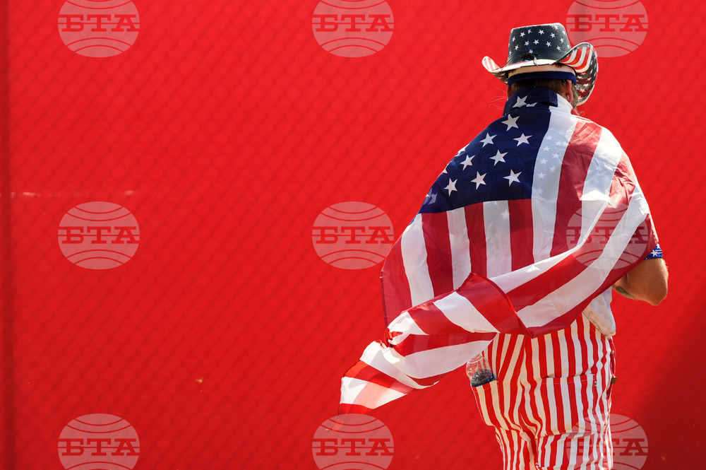 A United States fan walks during a practice round for the Ryder Cup golf tournament, Tuesday, Sept. 23, 2025, in Farmingdale, N.Y., at Bethpage State Park's Black Course. (AP Photo/Lindsey Wasson)
