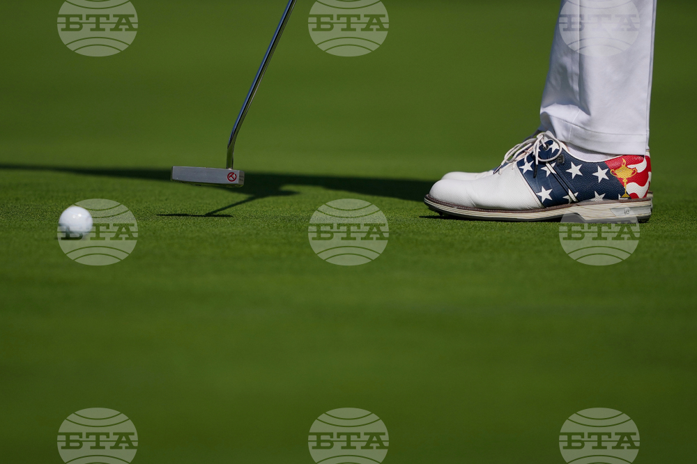 Europe putts on the 14th hole during a practice round for the Ryder Cup golf tournament, Tuesday, Sept. 23, 2025, in Farmingdale, N.Y., at Bethpage State Park's Black Course. (AP Photo/Matt Slocum)