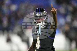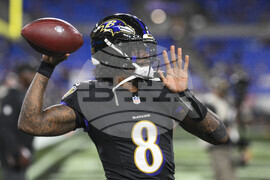 Baltimore Ravens quarterback Lamar Jackson works out prior to an NFL football game against the Detroit Lions Monday, Sept. 22, 2025, in Baltimore. (AP Photo/Nick Wass)