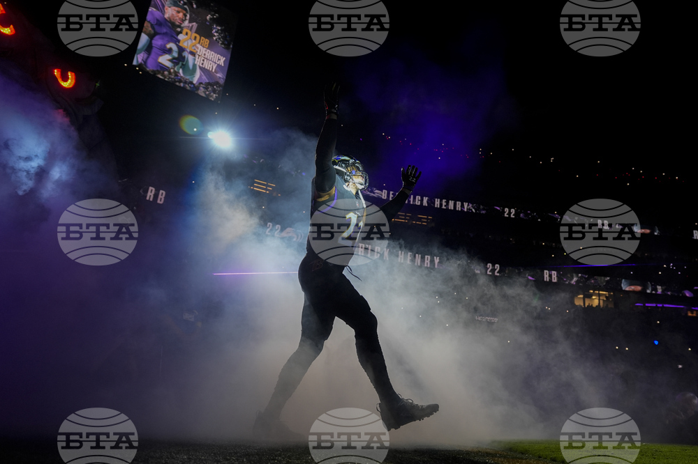 Baltimore Ravens running back Derrick Henry is introduced onto the field prior to an NFL football game against the Detroit Lions Monday, Sept. 22, 2025, in Baltimore. (AP Photo/Stephanie Scarbrough)