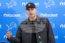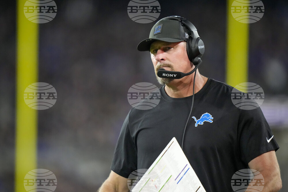 Detroit Lions speaks to reporters following an NFL football game against the Baltimore Ravens Monday, Sept. 22, 2025, in Baltimore. (AP Photo/Stephanie Scarbrough)