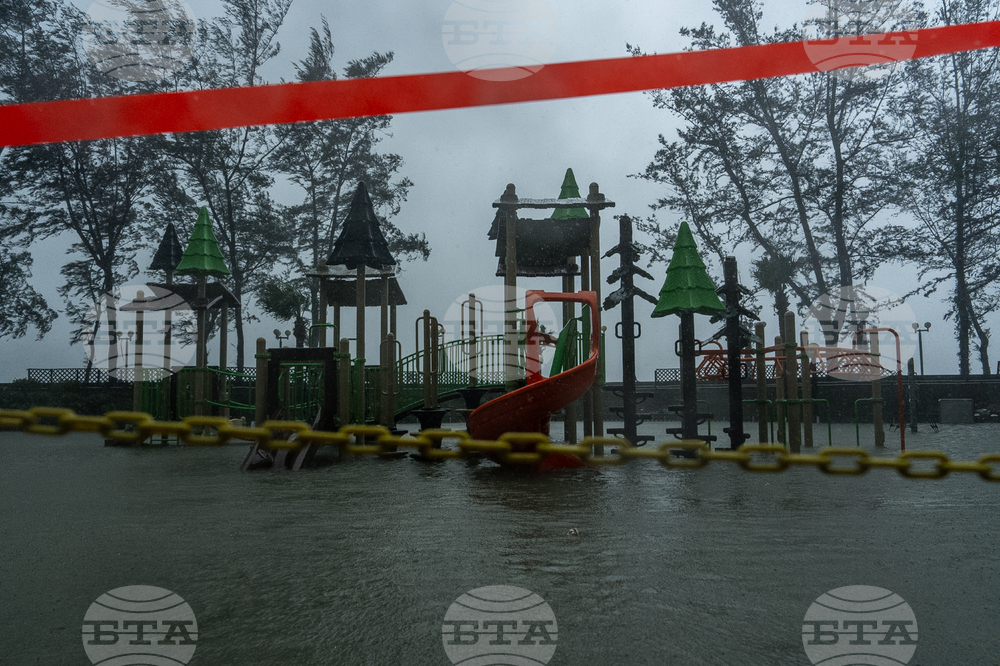 A playground is submerged in a flood in Heng Fa Chuen area as Super Typhoon Ragasa approaches in Hong Kong, Wednesday, Sept. 24, 2025. (AP Photo/Chan Long Hei)
