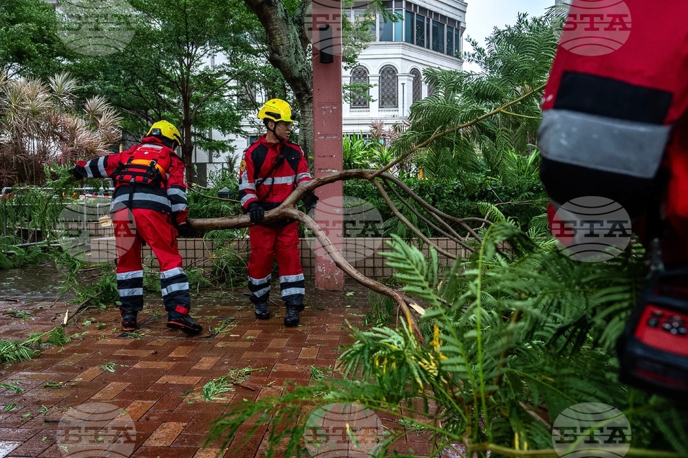 Firefighters remove a fallen tree in Lei Yue Mun area as super typhoon Ragasa approaches in Hong Kong, Wednesday, Sept. 24, 2025. (AP Photo/Chan Long Hei)