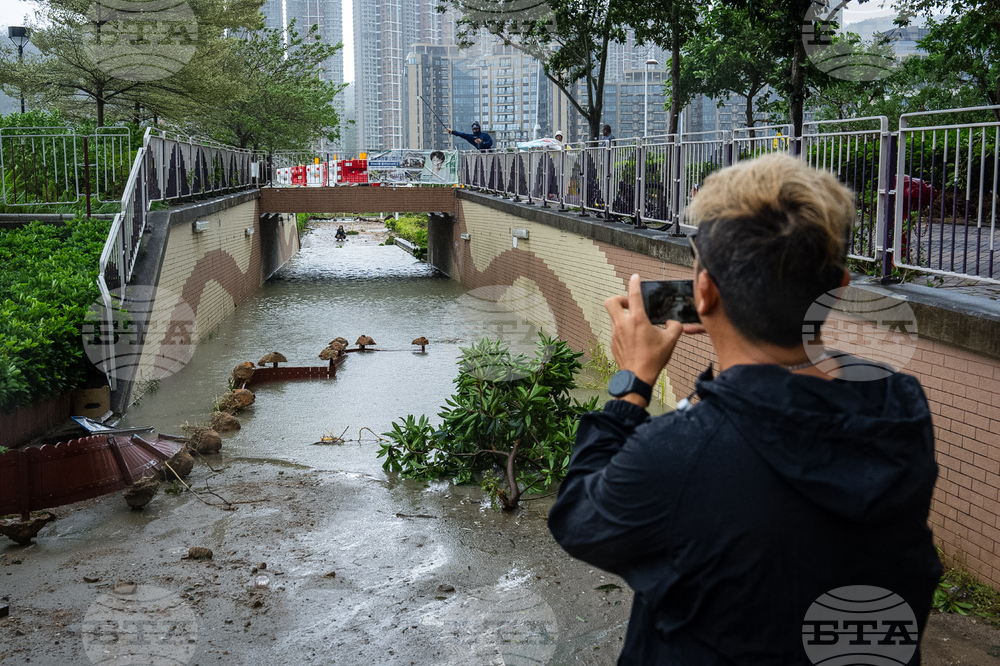 A resident takes pictures of a flooded tunnel in Tseung Kwan O area, as super typhoon Ragasa approaches in Hong Kong, Wednesday, Sept. 24, 2025. (AP Photo/Chan Long Hei)
