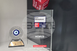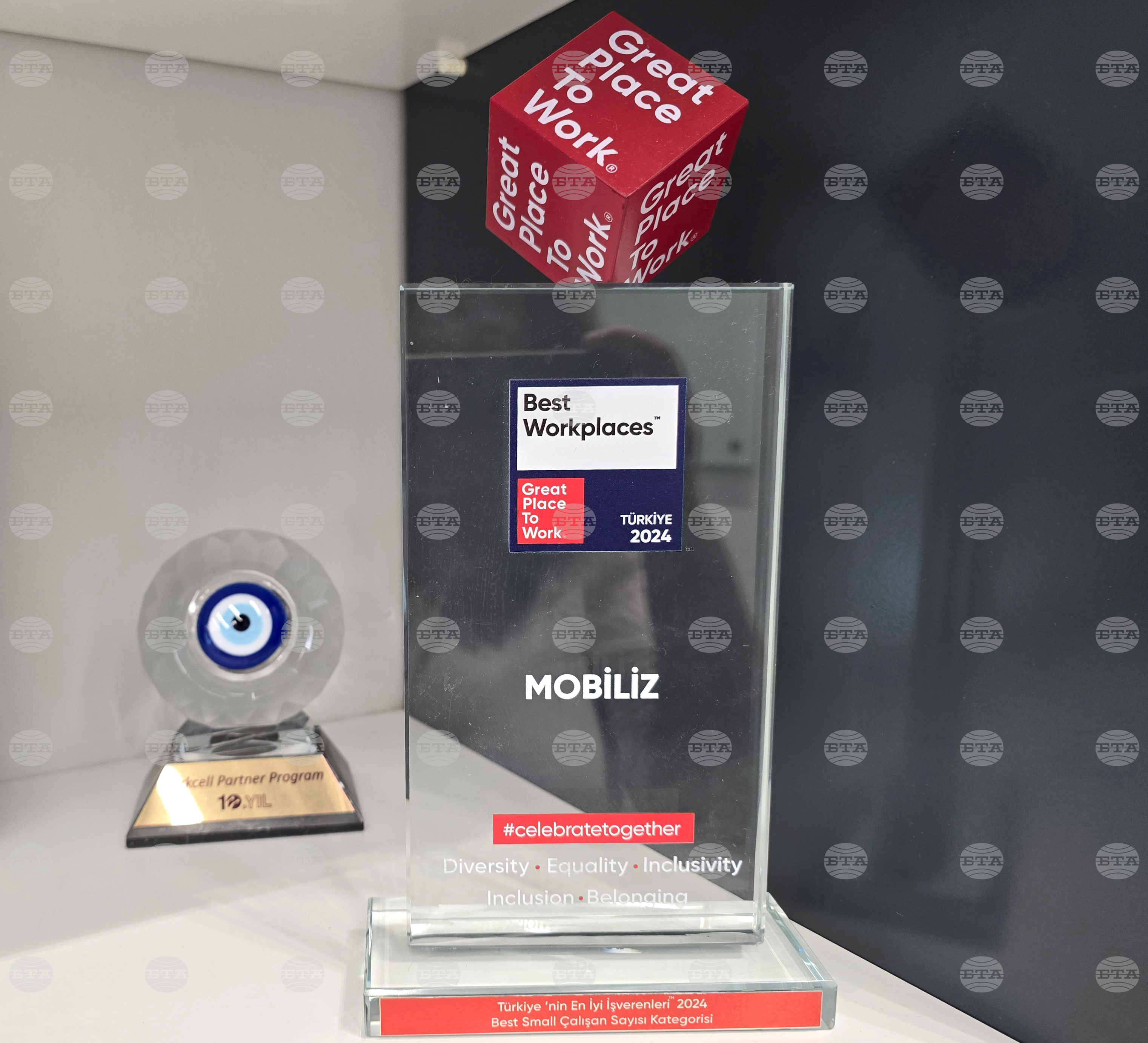 Анкара (23 септември 2025) В технологичния парк „Билкент“ в Анкара е установена турската фирма „Мобилиз“, която е купена през 2020 г. от български собственици. Фирмата поддържа GPS-системите на 500 хил. коли в Турция. Сред тях са и тези на Жандармерията. На снимката: Отличие за най-добро работно място, което фирмата печели три пъти.