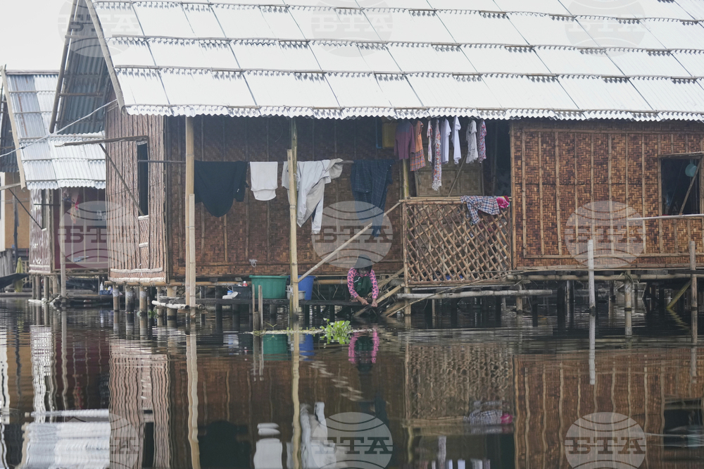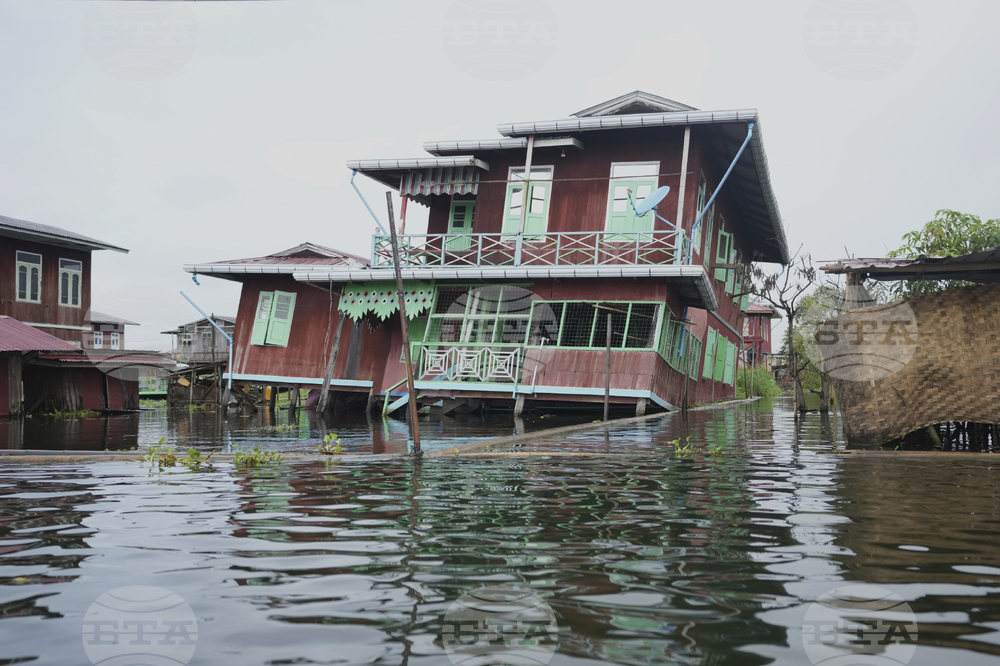 A house is seen partially collapsed after an earthquake in Inle Lake, southern Shan State, Myanmar, Tuesday, Sept. 23, 2025. (AP Photo/Thein Zaw)