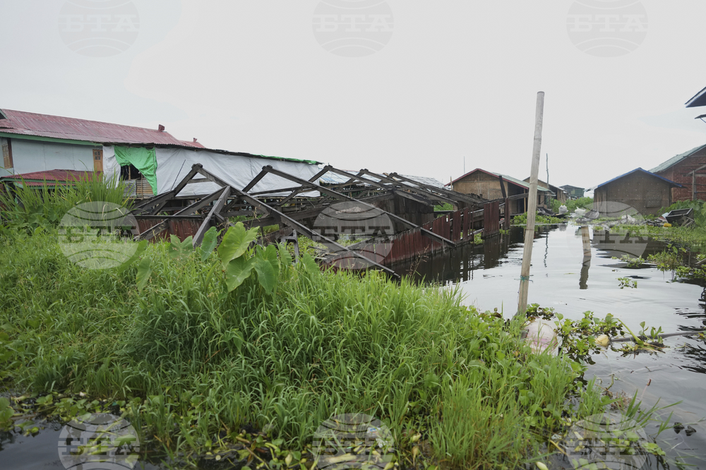 Constructions are seen collapsed after an earthquake in Inle Lake, southern Shan State, Myanmar, Tuesday, Sept. 23, 2025. (AP Photo/Thein Zaw)