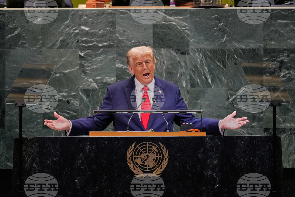 U.S. President Donald Trump gestures as he leaves after his address to the 80th session of the United Nations General Assembly, Tuesday, Sept. 23, 2025. (AP Photo/Richard Drew)