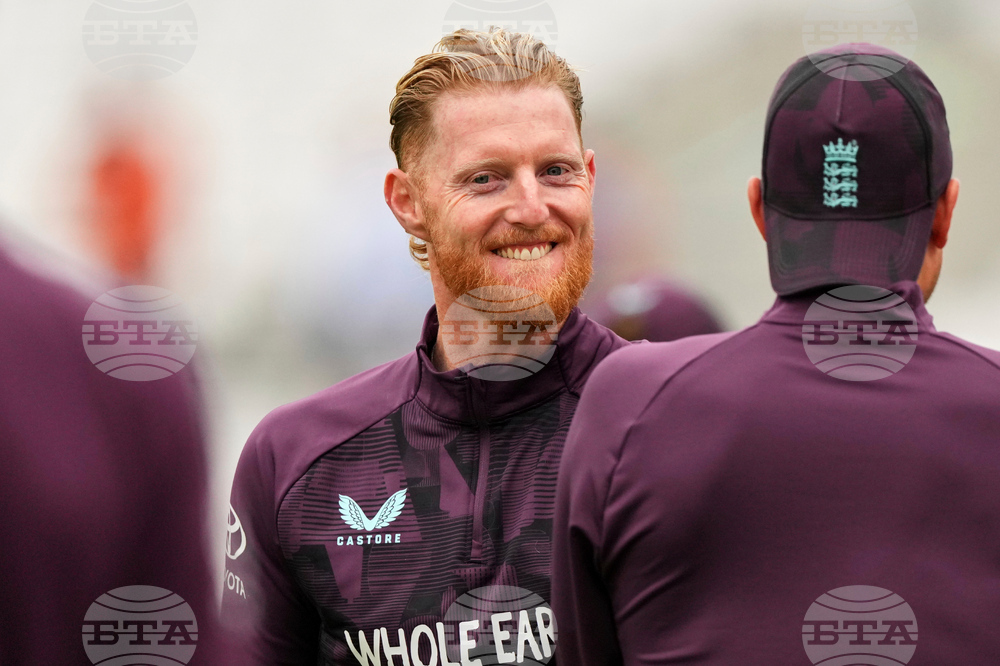 FILE - England's Ben Stokes smiles during warm up on day one of the fifth cricket test match between England and India at The Kia Oval in London, Thursday, July 31, 2025. (AP Photo/Kirsty Wigglesworth, file)