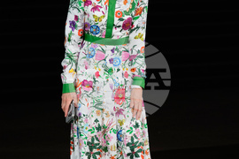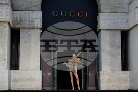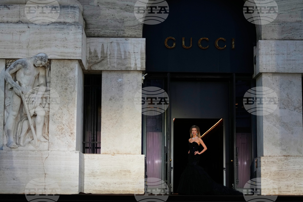 A model wears a creation part of the Gucci's Spring Summer 2026 collection presented in Milan, northern Italy, Tuesday, Sept. 23, 2025. (AP Photo/Luca Bruno)