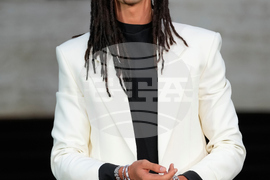Ghali Amdouni arrives for the premiere of the short film "The Tiger," directed by Spike Jonze and Halina Reijn, featuring the first looks by Gucci's new creative director, Demna, in Milan, northern Italy, Tuesday, Sept. 23, 2025. (AP Photo/Luca Bruno)