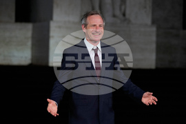 Francois-Henri Pinault arrives for the premiere of the short film "The Tiger," directed by Spike Jonze and Halina Reijn, featuring the first looks by Gucci's new creative director, Demna, in Milan, northern Italy, Tuesday, Sept. 23, 2025. (AP Photo/Luca Bruno)