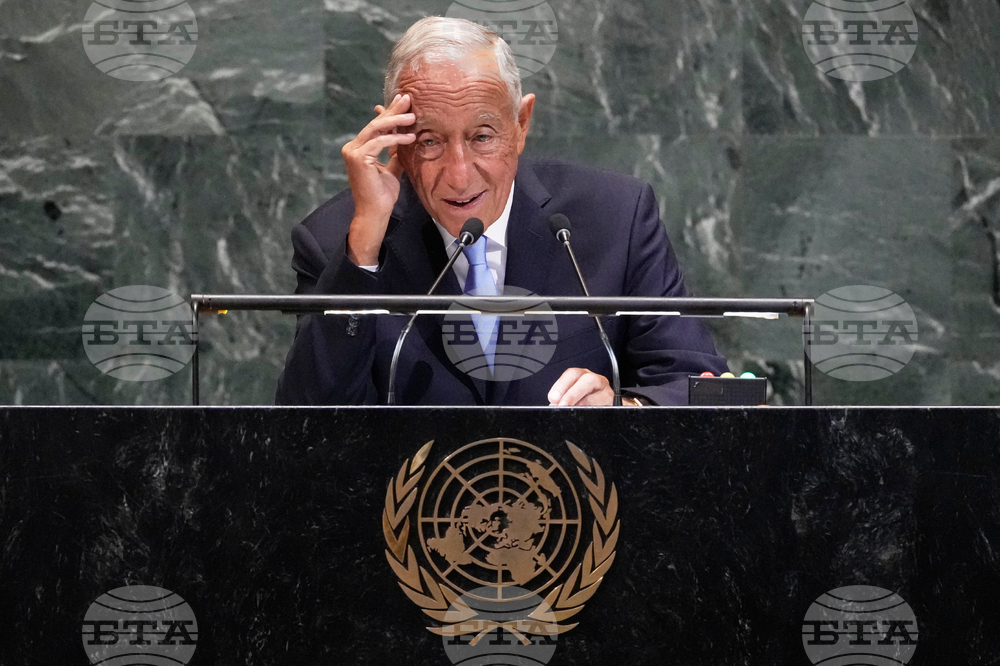 Portugal President Marcelo Rebelo de Sousa addresses the 80th session of the United Nations General Assembly, Tuesday, Sept. 23, 2025. (AP Photo/Richard Drew)