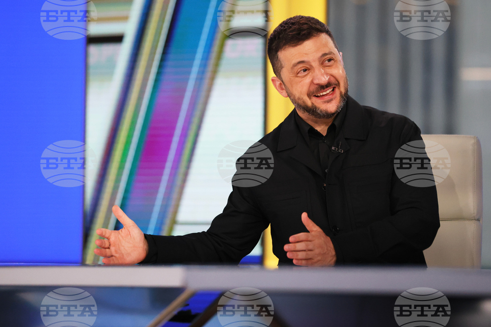 Ukraine President Volodymyr Zelenskyy speaks with Bret Baier, bottom left, during a taping of FOX News Channel's Special Report with Bret Baier during the 80th session of the United Nations General Assembly, Tuesday, Sept. 23, 2025, in New York. (AP Photo/Heather Khalifa)