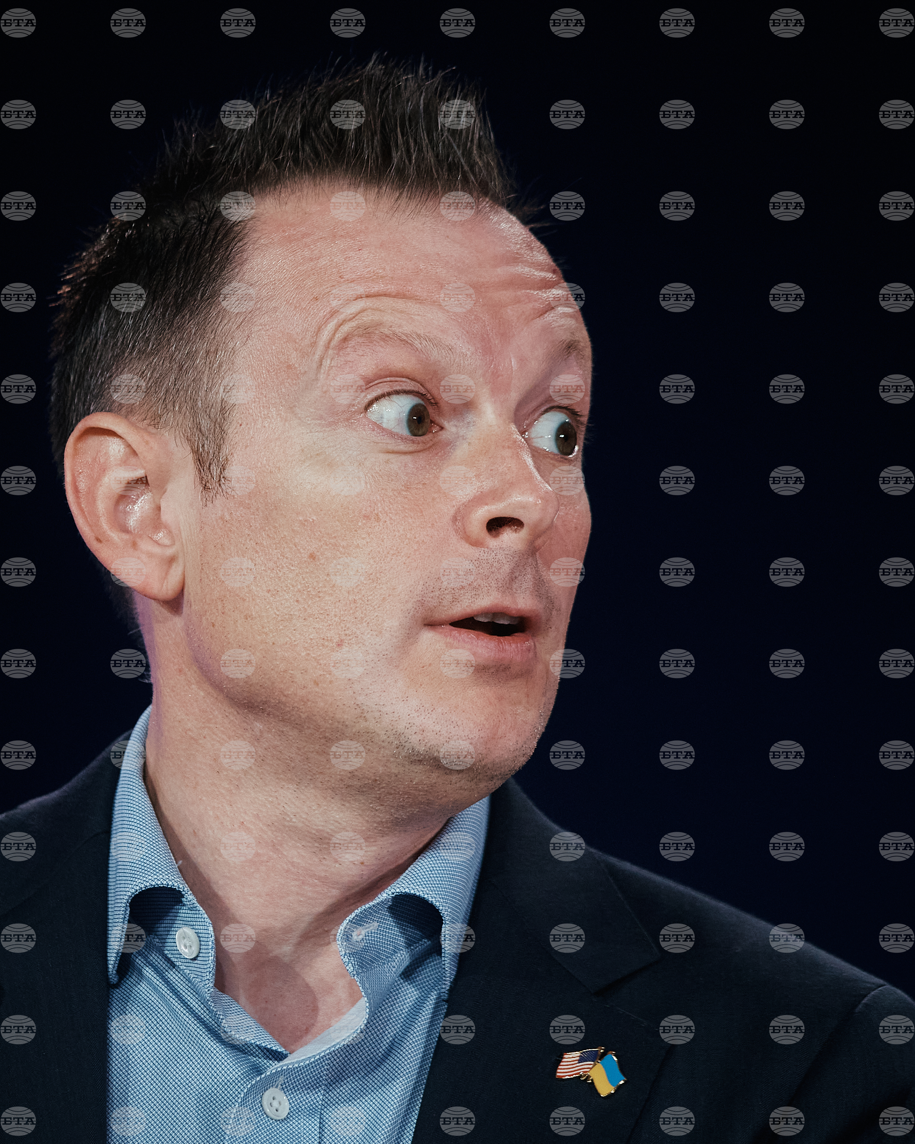 Nate Mook from All Hands & Hearts speaks during the Concordia Annual Summit in New York, Tuesday, Sept. 23, 2025. (AP Photo/Andres Kudacki)