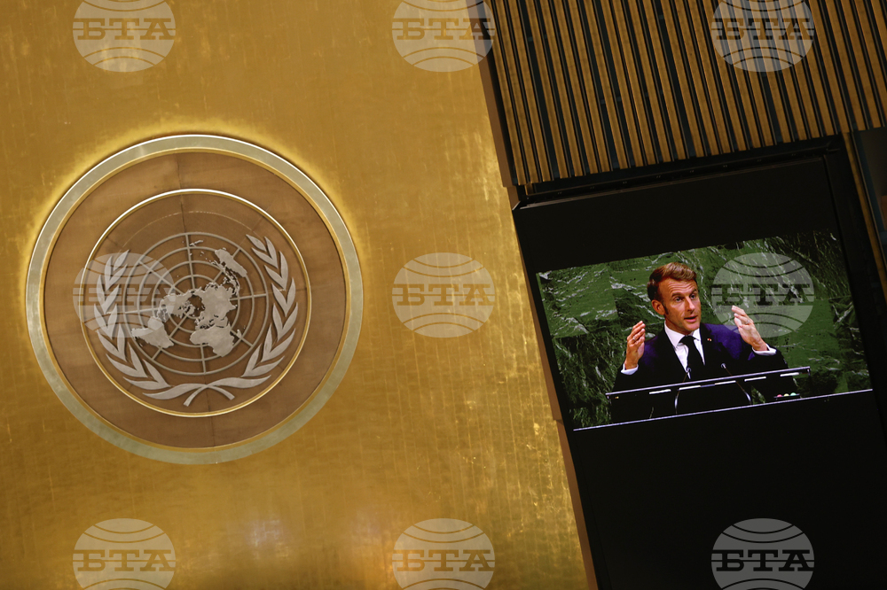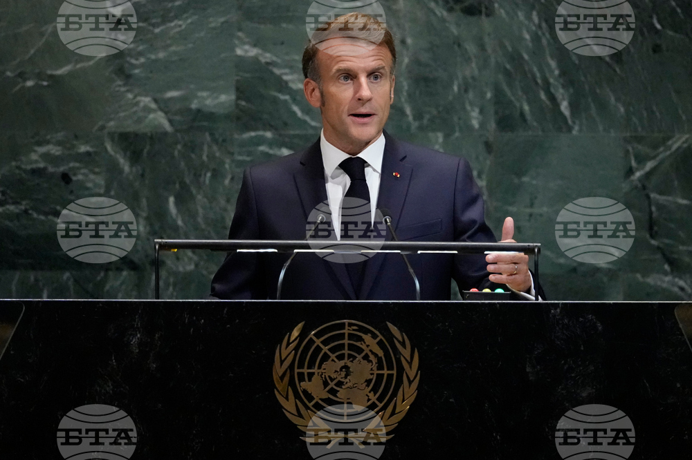 President of France Emmanuel Macron addresses the 80th session of the United Nations General Assembly, Tuesday, Sept. 23, 2025, at U.N. headquarters. (AP Photo/Pamela Smith)