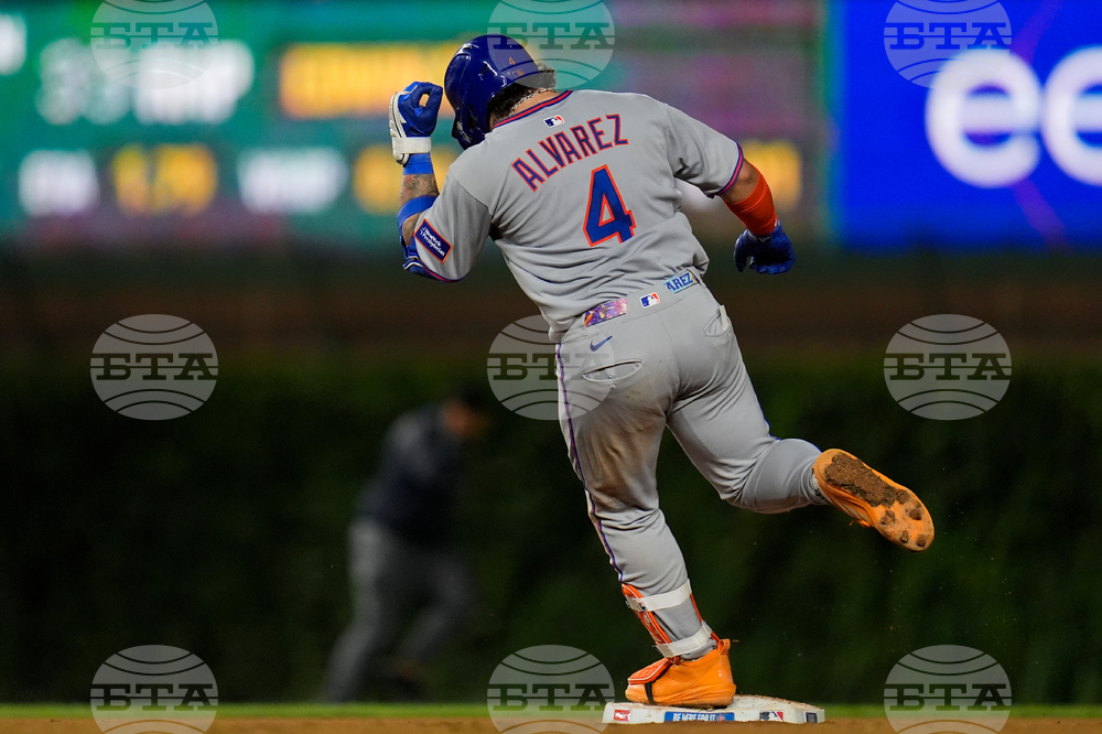 New York Mets' Francisco Alvarez (4) runs the bases after hitting a two-run home run during the seventh inning of a baseball game against the Chicago Cubs, Tuesday, Sept. 23, 2025, in Chicago. (AP Photo/Erin Hooley)
