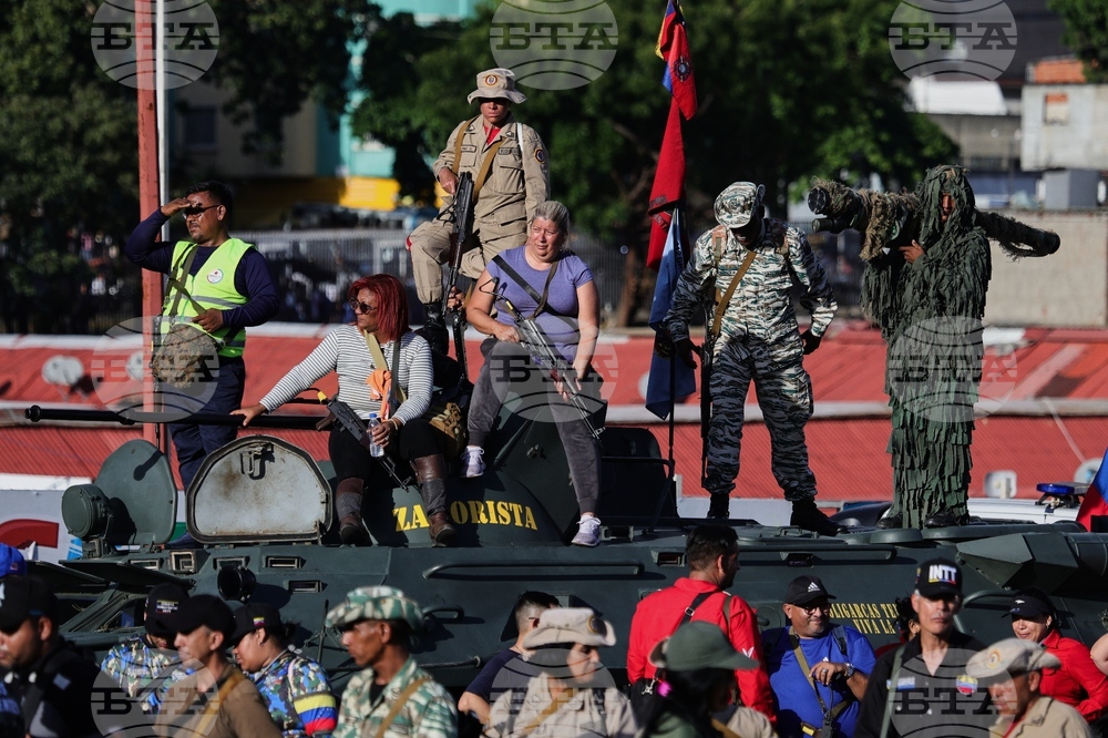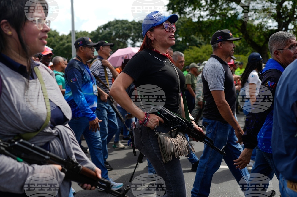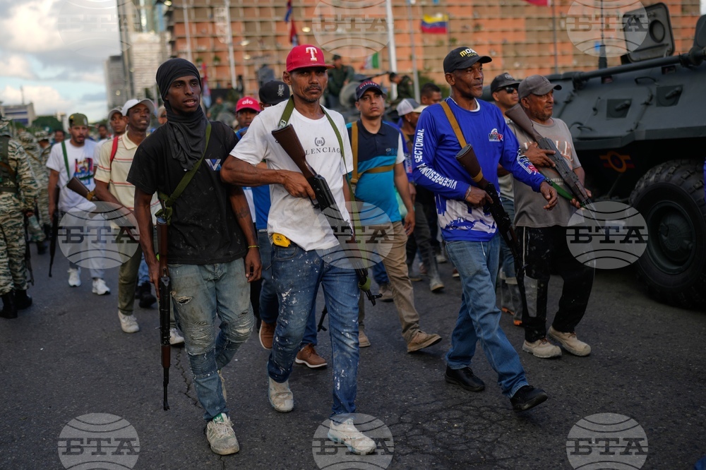 Armed demonstrators take part in a government-organized march in support of President Nicolas Maduro in Caracas, Venezuela, Tuesday, Sept. 23, 2025. (AP Photo/Jesus Vargas)