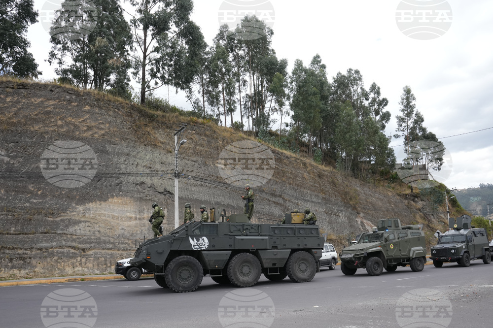 Soldiers standby on the perimeters on an anti-government protest in Otavalo, Ecuador, Wednesday, Sept. 24, 2025. (AP Photo/Dolores Ochoa)