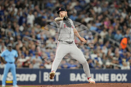Toronto Blue Jays starting pitcher Kevin Gausman (34) throws to a Boston Red Sox batter in first inning American League baseball action in Toronto on Tuesday, Sept. 23, 2025. (Jon Blacker/The Canadian Press via AP)
