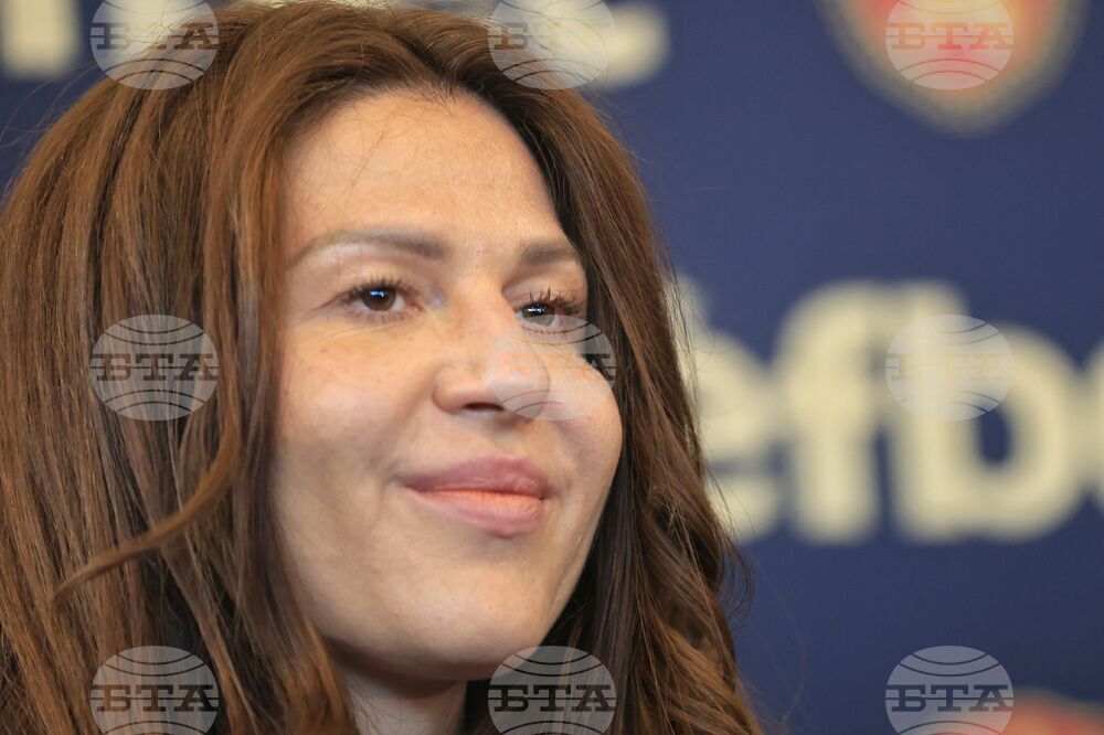 София (24 септември 2025) В Национална футболна база „Бояна“ се провежда заседание на Изпълнителния комитет на Българския футболен съюз (БФС). След края на заседанието се състоя брифинг. На снимката: Мила Христова, член на изпълкома на БФС.