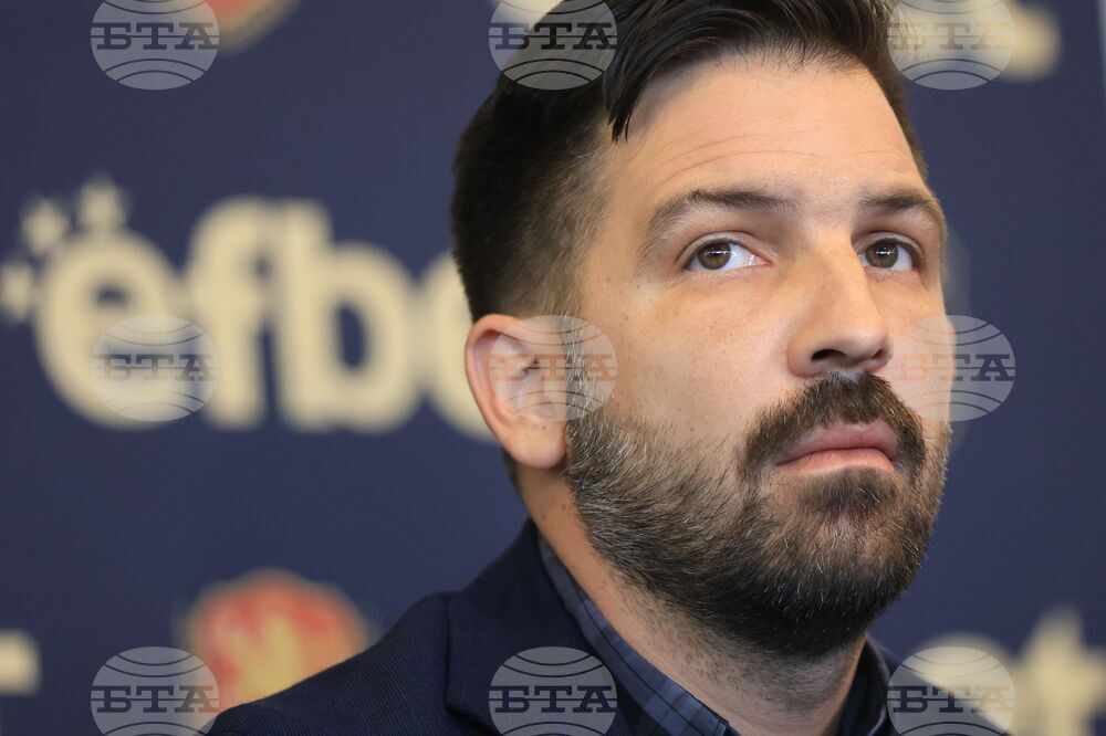 София (24 септември 2025) В Национална футболна база „Бояна“ се провежда заседание на Изпълнителния комитет на Българския футболен съюз (БФС). След края на заседанието се състоя брифинг. На снимката: заместник изпълнителният директор на БФС Добрин Гьонов (вдясно).