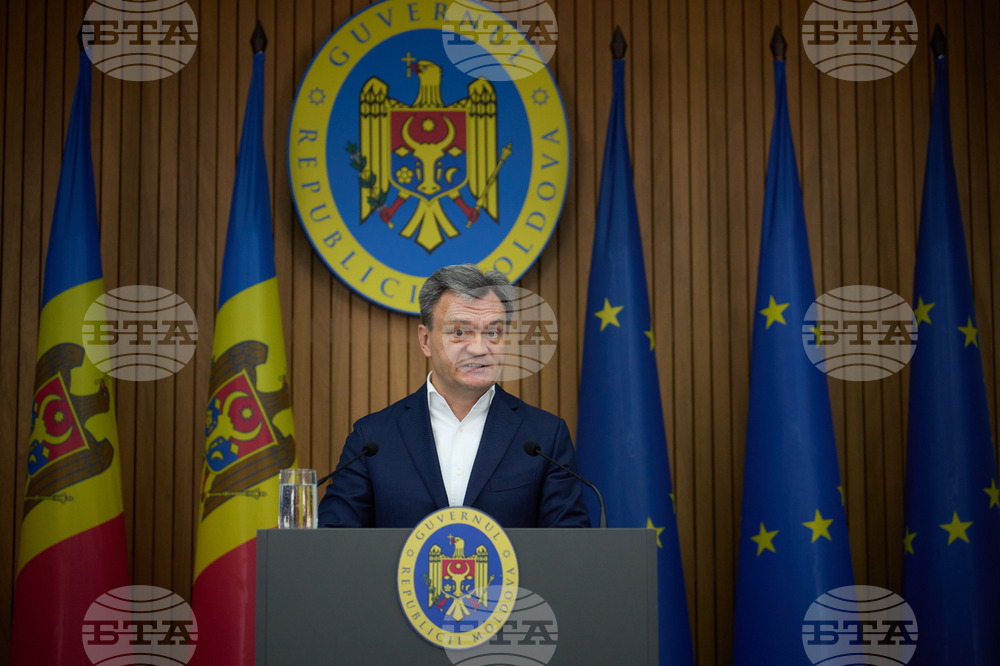 Moldova's Prime Minister Dorin Recean speaks during statements on Russia's attempts to interfere in the country's upcoming Sept. 28 parliamentary elections in Chisinau, Moldova, Wednesday, Sept. 24, 2025. (AP Photo/Vadim Ghirda)
