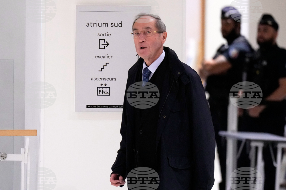 Claude Gueant, a former adviser close to former French President Nicolas Sarkozy, arrives to the courtroom for the Sarkozy's verdict for alleged illegal financing of his 2007 presidential campaign by the government of then-Libyan leader Moammar Gadhafi, Thursday, Sept. 25, 2025 in Paris. (AP Photo/Michel Euler)