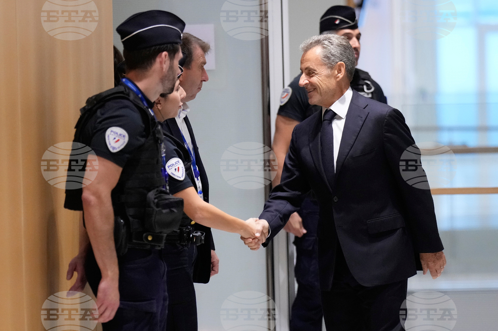 Former French President Nicolas Sarkozy arrives at the courthouse, in Paris, France, Thursday, Sept. 25, 2025. (AP Photo/Christophe Ena)