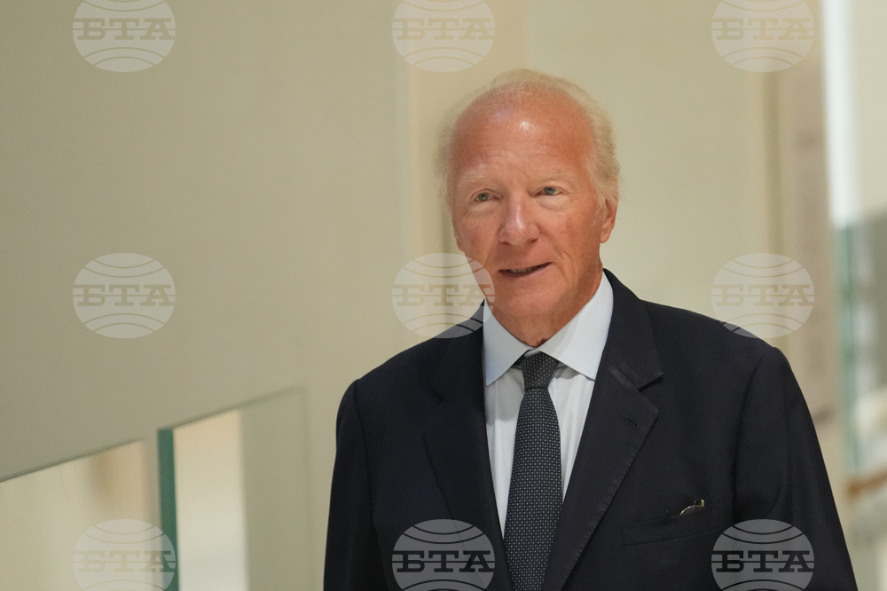 Former Interior Minister Brice Hortefeux arrives to the courtroom for the former French President Nicolas Sarkozy's verdict for alleged illegal financing of his 2007 presidential campaign by the government of then-Libyan leader Moammar Gadhafi, Thursday, Sept. 25, 2025 in Paris. (AP Photo/Michel Euler)