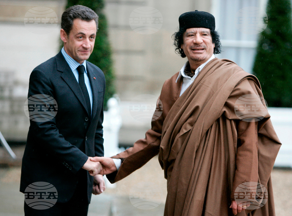 FILE - French President Nicolas Sarkozy, left, greets Libyan leader Col. Moammar Gadhafi upon his arrival on Dec. 10 2007 at the Elysee Palace, in Paris. (AP Photo/Francois Mori, File)