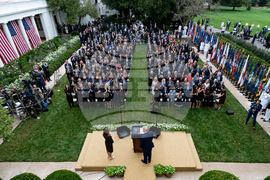 FILE - President Donald Trump speaks as he announces Judge Amy Coney Barrett as his nominee to the Supreme Court, in the Rose Garden at the White House, Sept. 26, 2020, in Washington. (AP Photo/Alex Brandon, File)