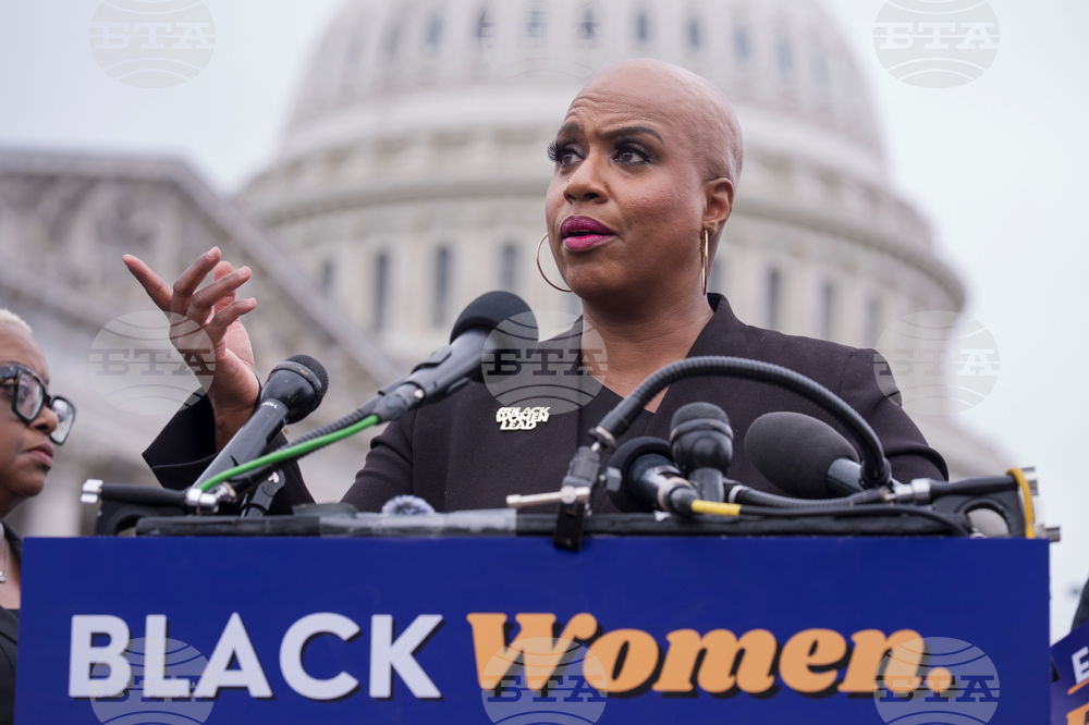 Rep. Ayanna Pressley, D-Mass., joins leaders from Black advocacy groups at a news conference to highlight how mass federal workforce layoffs and anti-DEI policies by President Donald Trump impact Black women and the economy, at the Capitol in Washington, Thursday, Sept. 25, 2025. (AP Photo/J. Scott Applewhite)