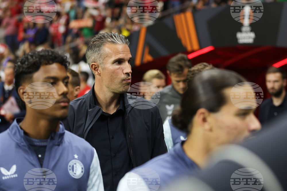 Feyenoord's head coach Robin van Persie sits on the bench during the Europa League opening phase soccer match between SC Braga and Feyenoord at the Municipal stadium in Braga, Portugal, Wednesday, Sept. 24, 2025. (AP Photo/Miguel Angelo Pereira)