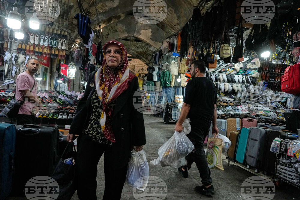 People carry their shopping items at Amin ol-Soltan traditional market in Tehran, Iran, Wednesday, Sept. 24, 2025. (AP Photo/Vahid Salemi)