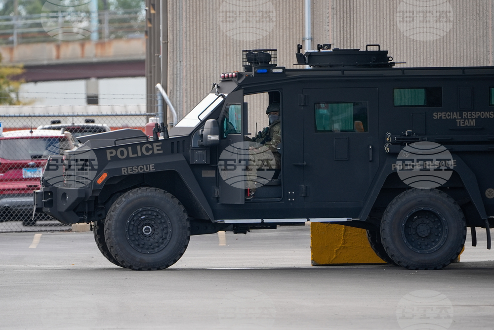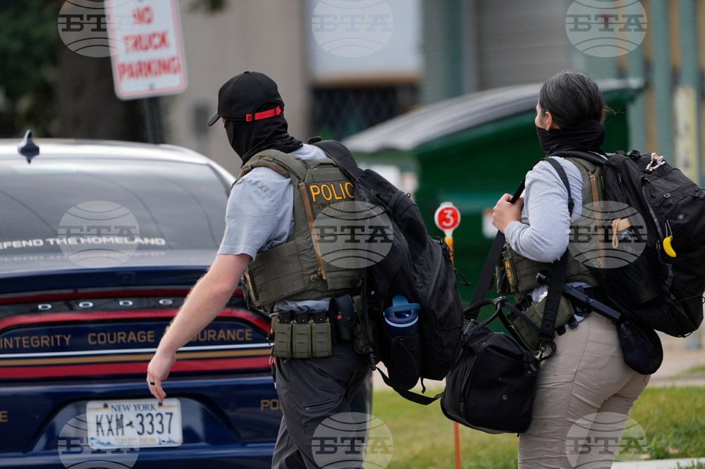Federal agents leave the U.S. Immigration and Customs Enforcement (ICE) building Wednesday, Sept. 24, 2025, in Broadview, Ill. (AP Photo/Erin Hooley)