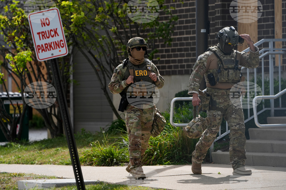 Enforcement and Removal Operations agents walk outside the U.S. Immigration and Customs Enforcement (ICE) building Wednesday, Sept. 24, 2025, in Broadview, Ill. (AP Photo/Erin Hooley)