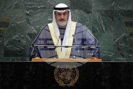 Crown Prince of Kuwait Sheikh Sabah Al-Khaled Al-Sabah addresses the 80th session of the United Nations General Assembly, Wednesday, Sept. 24, 2025, at U.N. headquarters. (AP Photo/Pamela Smith)